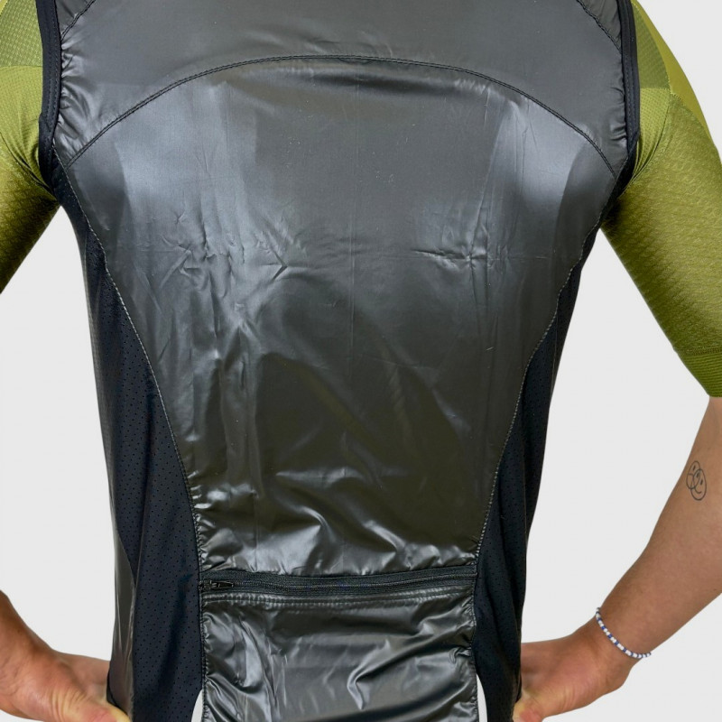 Mit der Windweste NW-696-Black ist man bestens gegen kühlen Fahrtwind geschützt. Ihre dichte Front lässt kein Wind durch und verhindert somit das Auskühlen des Körpers. Seiten bestehen aus luftigem Stretch-Material, das die Atmungsaktivität optimiert und für eine perfekte Passform sorgt. Dank des Netzteil an der Seite kann man die Ventilation optimieren.